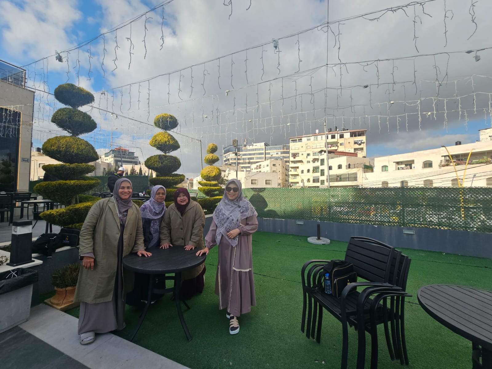 Meskipun suhu udara di Yerusalem cukup dingin, kondisi cuaca yang cerah membuat keindahan Kota Yerusalem dan kompleks Masjidil Aqsha terlihat semakin memukau. Panorama bangunan bersejarah berpadu dengan suasana religius yang menenangkan hati, menjadikan perjalanan Umroh Plus Aqsha ini sebagai pengalaman yang tak terlupakan.